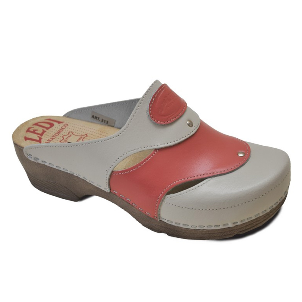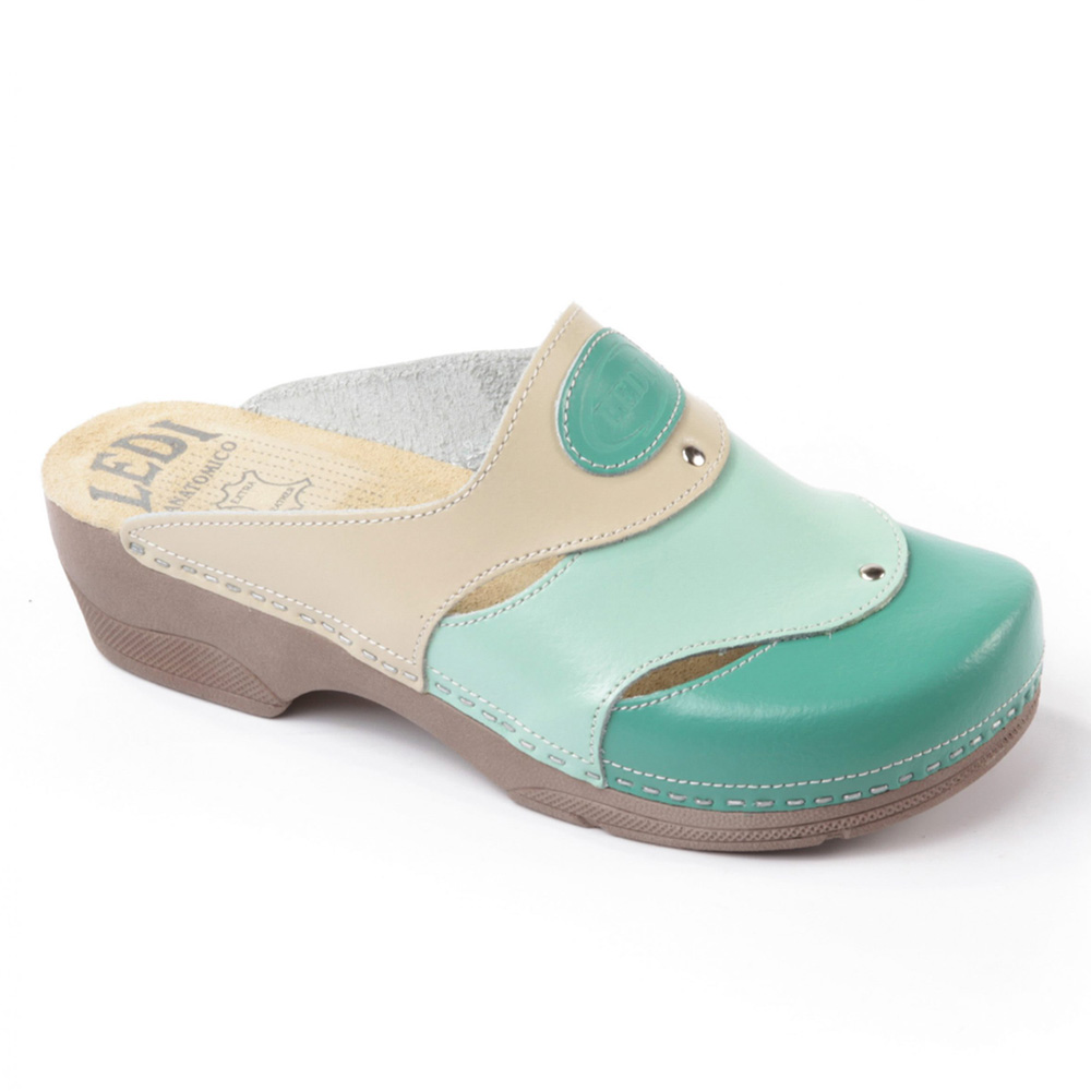 Women’s leather clogs with medium heel height, designed for dry weather characterized by comfort, quality and high functionality