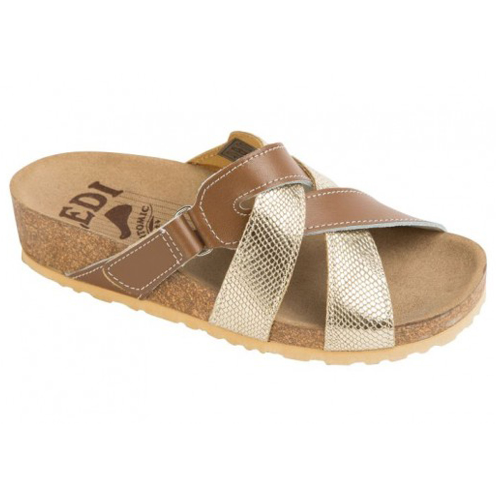 Women’s leather slippers with low heel height, designed for dry weather characterized by comfort, quality and high functionality